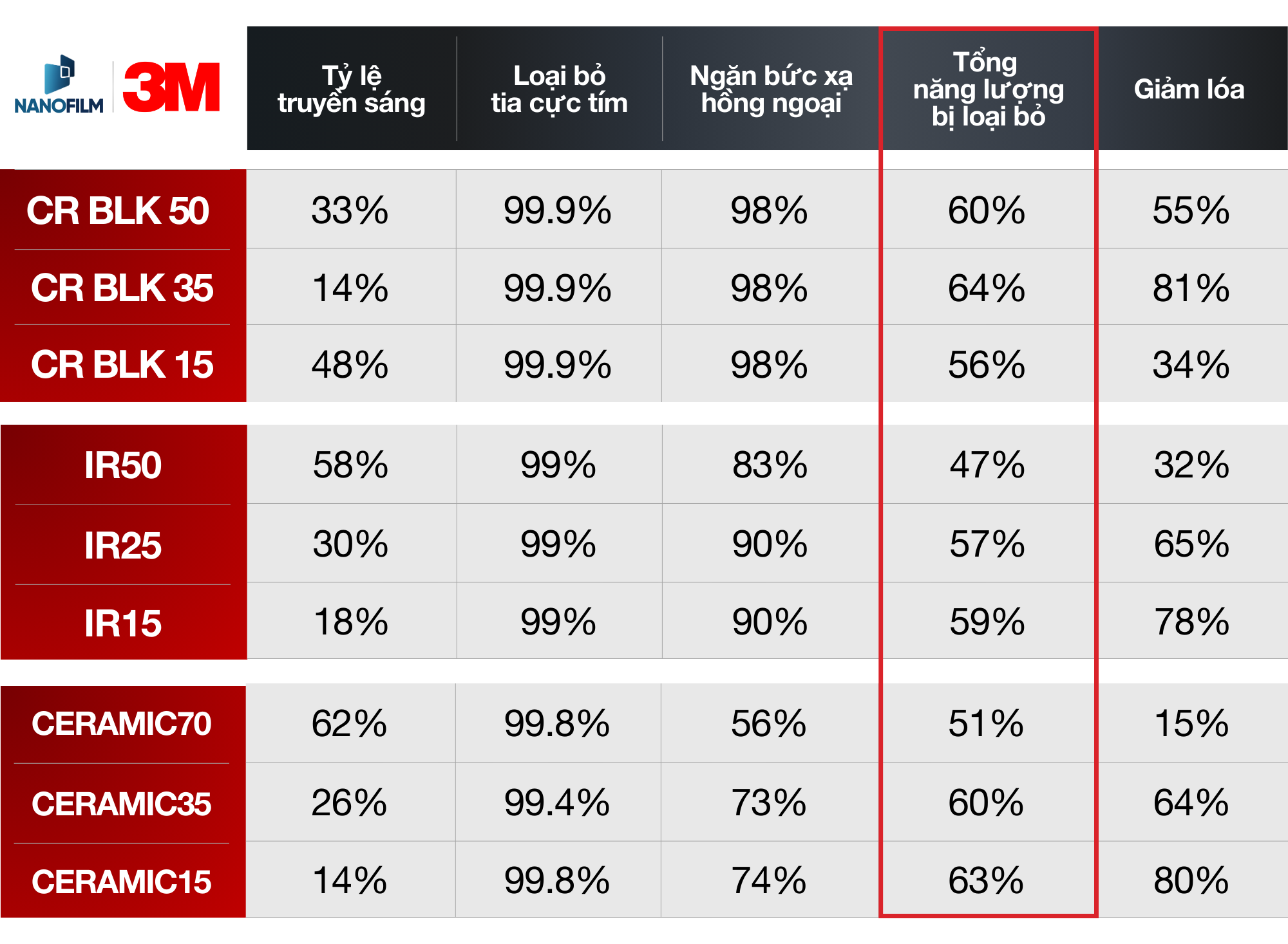 Thông số phim cách nhiệt 3M