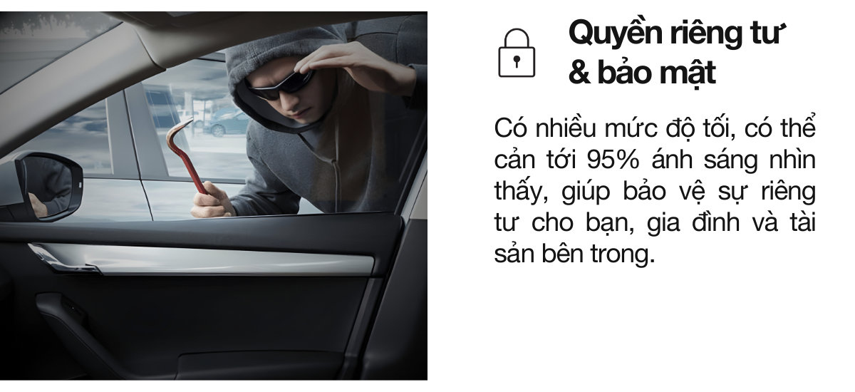 Với cấu trúc 200 lớp nano mỏng hơn cả một tờ giấy Post-it®, dòng phim CR BLK vừa duy trì độ trong quang học vượt trội vừa sở hữu dải màu đen. Sự kết hợp giữa hiệu năng quang học và kiểm soát nhiệt mạnh mẽ giúp khoang xe mát hơn, dễ chịu hơn trong mọi điều kiện nắng nóng.