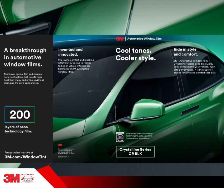 Dòng 3M™ Crystalline Black (CR BLK) là phiên bản nâng cấp trong hệ sinh thái phim cách nhiệt cao cấp của 3M, được ứng dụng công nghệ nano đa lớp (Multi-Layer Optical Film) độc quyền của thương hiệu. Mỗi mã phim trong nhóm CR BLK được cấu tạo từ hơn 200 lớp vật liệu siêu mỏng, giúp tăng khả năng phản xạ nhiệt mà vẫn giữ màu sắc trong suốt và sang trọng.